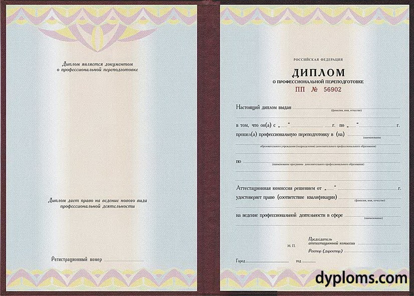 Данный документ удостоверяет, что его владелец овладел дополнительной профессией, помимо основной, приобретенной в университете или колледже. Имея высшее образование, вы ежегодно можете проходить программы переподготовки и получать диплом государственного образца по новой специальности. Освоив дополнительную квалификацию, вы получаете возможность занимать аналогичные позиции в выбранной отрасли.